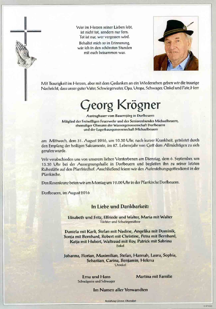 Verstorben am: ✞ 31.08.2016Beerdigung am: ❧ 06.09.2016 13:30